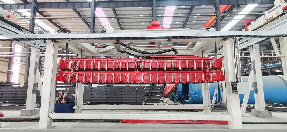Shandong Tianyi Machinery's autoclaved aerated panel production line is divided into several stages according to the production sequence: raw material preparation, steel bar processing (aerated sheet), batching, pouring, static stop, cutting, autoclaved curing, and autoclaving.