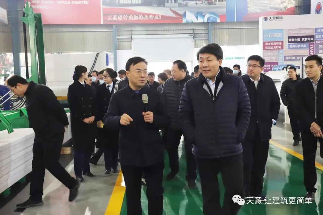 12月18日上午,鄒城市委常委、副市長欒濤一行蒞臨天意考察全市新舊動能轉(zhuǎn)換現(xiàn)場觀摩項目——裝配式建筑自動化PC生產(chǎn)線項目。兗州區(qū)委常委、區(qū)政府副區(qū)長、黨組副書記屈耀武,天意機械董事長劉洪彬陪同考察。