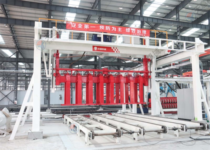 將板材吊運至板材輸送機或者將砌塊吊運至移動并坯機上;