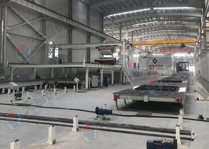 PC環(huán)形疊合板生產(chǎn)線采用高精度、高結(jié)構(gòu)強(qiáng)度的成型模具,經(jīng)自動(dòng)布料機(jī)把混凝土澆筑其中、振動(dòng)臺(tái)振搗后并不立即脫模,而是經(jīng)預(yù)養(yǎng)護(hù)、蒸汽養(yǎng)護(hù),使構(gòu)件強(qiáng)度滿足設(shè)計(jì)強(qiáng)度時(shí)才進(jìn)行拆模處理,拆模后的成品構(gòu)件運(yùn)輸至成品暫存區(qū)或室外堆場(chǎng),而空模臺(tái)沿輸送線自動(dòng)返回,形成自動(dòng)化環(huán)形流水作業(yè)。