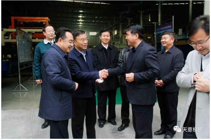 2018年11月27日,省政協(xié)辦公廳副主任朱興剛帶領(lǐng)“政協(xié)工作齊魯行”集中采訪團(tuán)一行23人,在市政協(xié)副主席陳希忠、兗州區(qū)區(qū)委書(shū)記王宏偉等領(lǐng)導(dǎo)陪同下,蒞臨天意機(jī)械考察指導(dǎo),公司董事長(zhǎng)劉洪彬熱情接待采訪團(tuán)一行并陪同參觀。